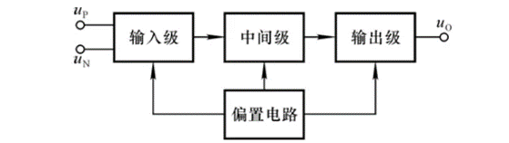 输入级:常为差分放大电路,要求Ri大Ad大Ac小, 输入端耐压高,它有同相和反相两个输入端。