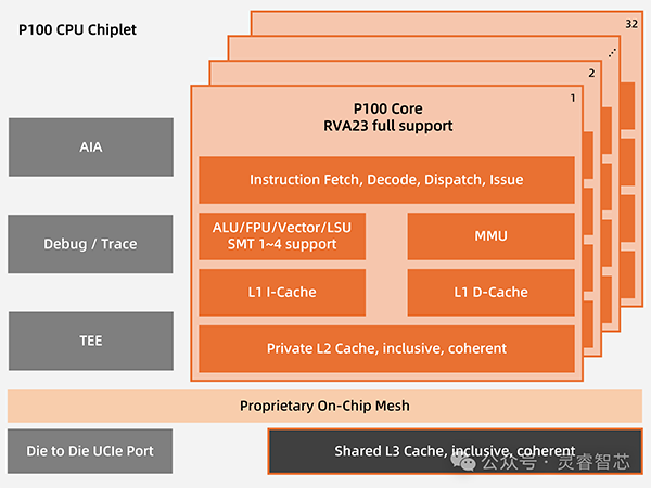 支持AIA架构:P100 全面兼容 RISC-V AIA 标准,支持消息信号中断(MSI),显著提升多核及外设中断处理效率;同时提供完善的中断虚拟化与优先级管理机制,更好地满足虚拟化环境及高性能数据转发等场景对中断系统的严苛要求。