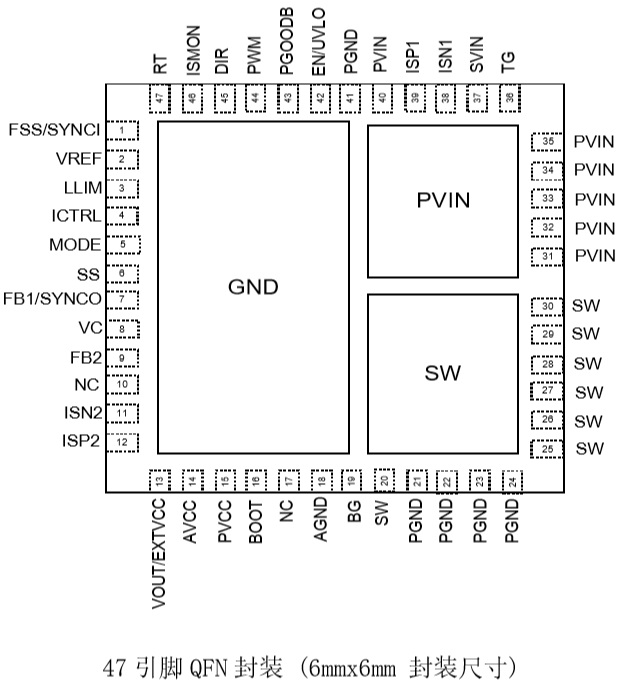• 47引脚QFN封装(6mmx6mm)
