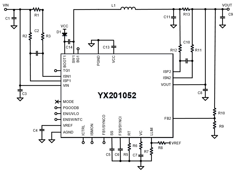 YX201052是一款高效功率同步降压转换器,具有完全集成的高压侧和低压侧8.3mΩVDMOS 功率MOSFET。它支持高达100V的宽输入范围,最高功率效率为 98%。YX201052集成了死区时间控制和VCC UVLO保护,支持高达12A的负载电流和针对不同应用的外部补偿。它提供精确的输入、输 出电流监控和电流感应输出,并带有电源良好报告功能。 YX201052支持50KHz至3MHz的超宽开关频率范围,并集成了频率扩频(FSS)以实现EMI优化。 它还具有外部补偿、可编程软启动功能,以减少启动期间的浪涌电流。YX201052采用6mmx6mm 47引脚 QFN 封装,带有用于散热的大裸露焊盘。